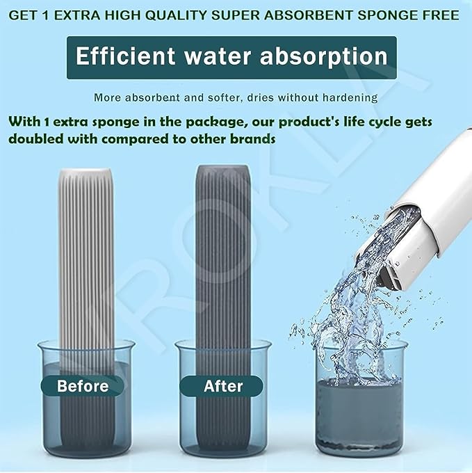 Super absorbent sponge quickly soaks up water and stains, and comes with an extra refill for longer use.