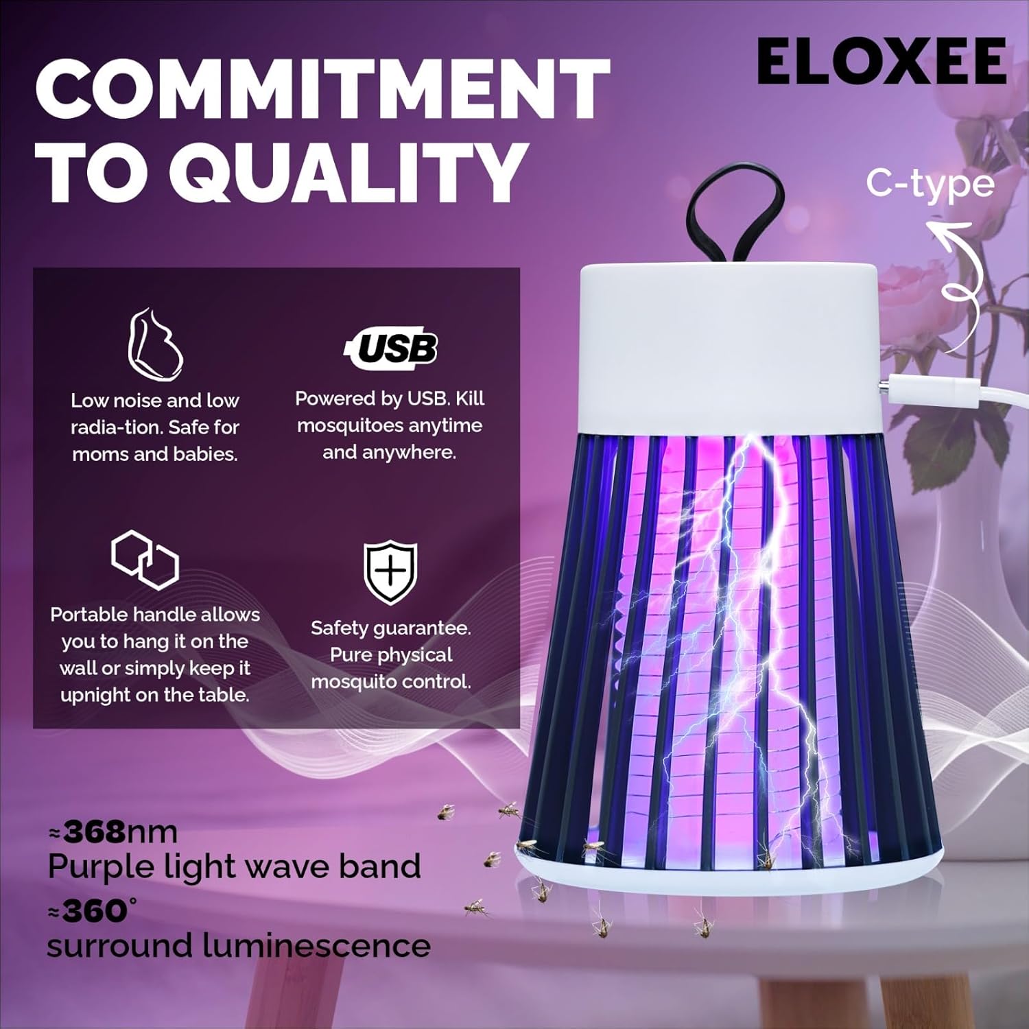 360Β° purple light technology kills mosquitoes safely with low noise & USB power.